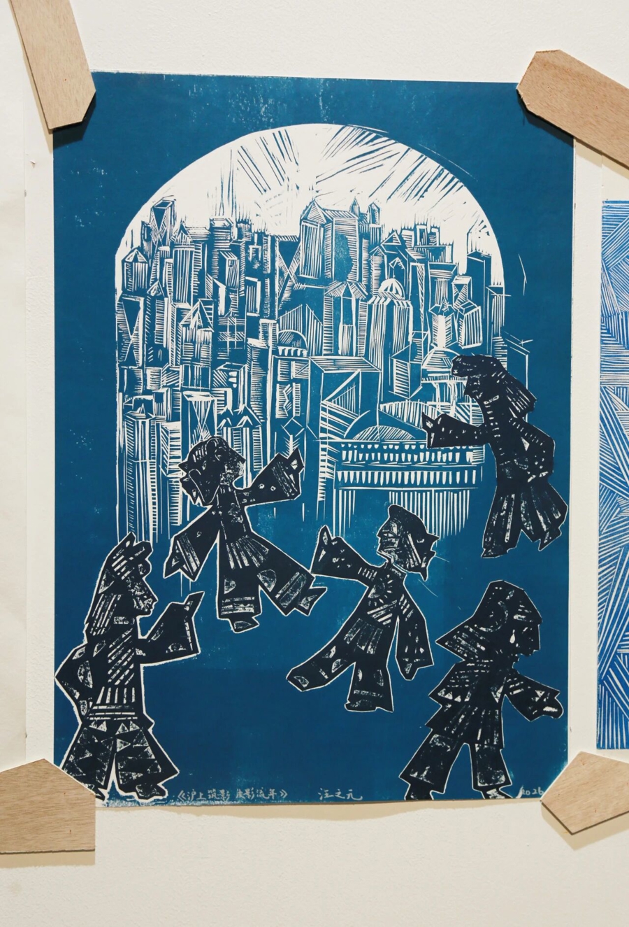 漫步展厅,三百余件作品铺展开一幅生动的美育成长画卷。传统笔墨的温润雅致、版画肌理的质朴厚重、当代艺术的先锋灵动、海派风情的细腻婉约交织共生。展览以拼图式木片定格作品的巧思,让墙面成为“未完成”的创作现场,恰与“过程大于结果”的美育内核同频共振。