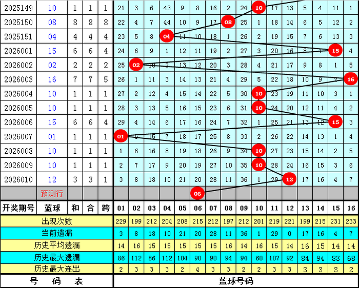 蓝球分析:最近7期蓝球号码012路比为2:5:0,奇偶比为2:5,大小比为6:1,本期预计蓝球开出小 号,参考蓝球号码06。