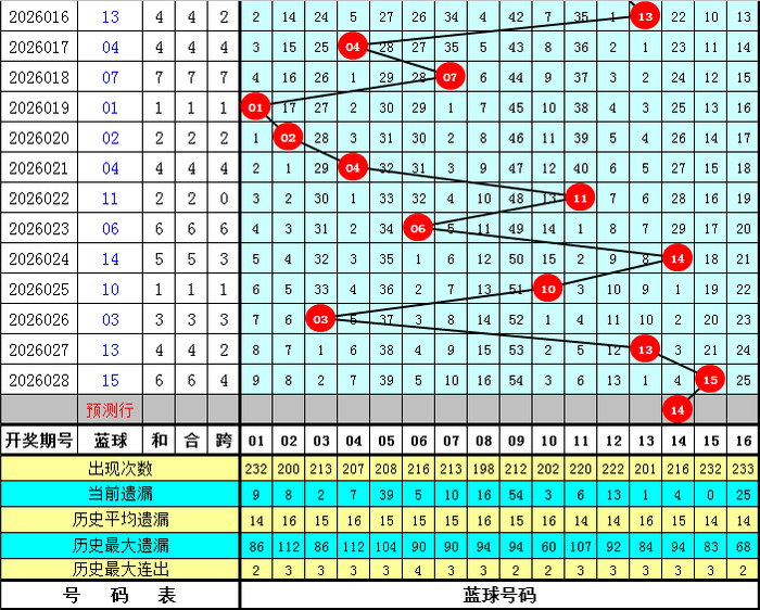 蓝球:历史同时0路号开出:03、12、15;1路号开出;04、07、10、13、16;2路号开出;05、08、14,蓝球012路个数比为6:9:8,现时2路号历史同时轮空2年,本年同时刺目2路号出现,参考号码14。