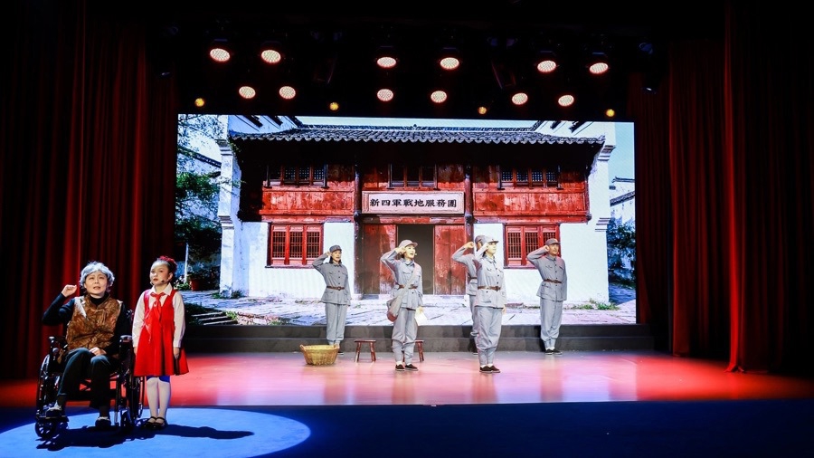 今天首演的舞台剧,以跨时空回忆的艺术手法,串联起顾燕义士短暂而色泽的一世。从投身地下党引导的苍生支撑所,到温顺前去皖南加入新四军;从教悔总队女战士到战地管事团成员;黄桥构兵中组织大众抢修说念路、救治伤员;身负重伤后仍坚捏为庶民评释新四军故事、教唱创新歌曲……现场不雅众被这一幕幕的故事深深打动,有的不禁泪下如雨。
