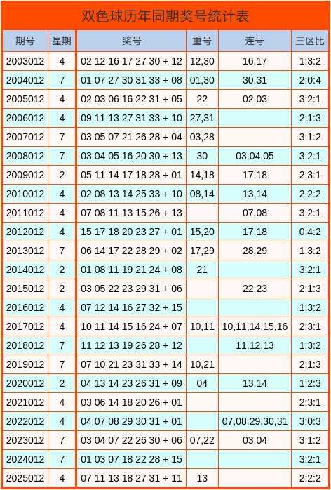 双色球历史同期奖号统计图