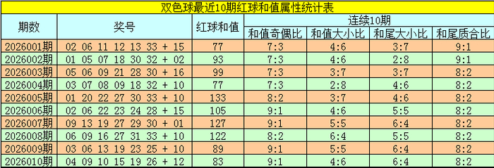 福彩双色球第2026011期红球和值综合分析: