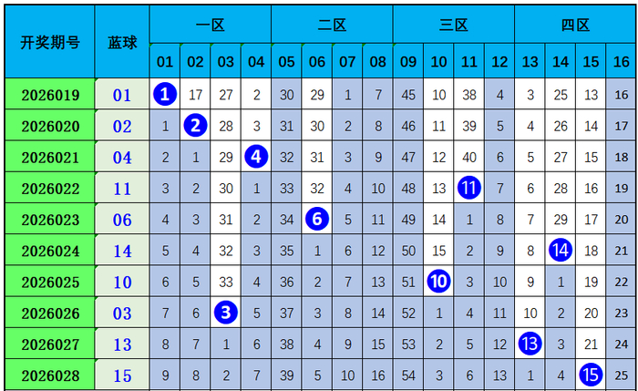 蓝球分析:上期开出大码蓝球15,较上期点位上涨,近10期蓝球开出大小比为5:5,大小码进展平衡,详尽分析,本期推选小码蓝球06。