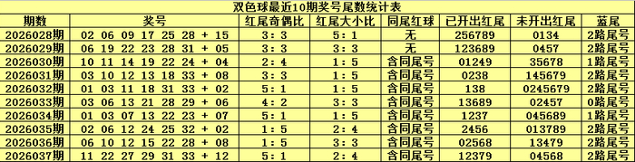 双色球第2026037期奖号为:11 22 27 29 31 33 + 12,红球余数为:12379,包含同尾红球:11 31。